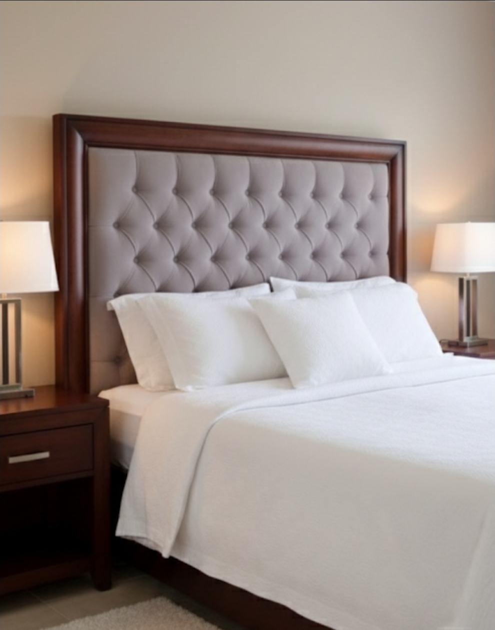 Chesterfield Headboard with Dark Wood Surround
