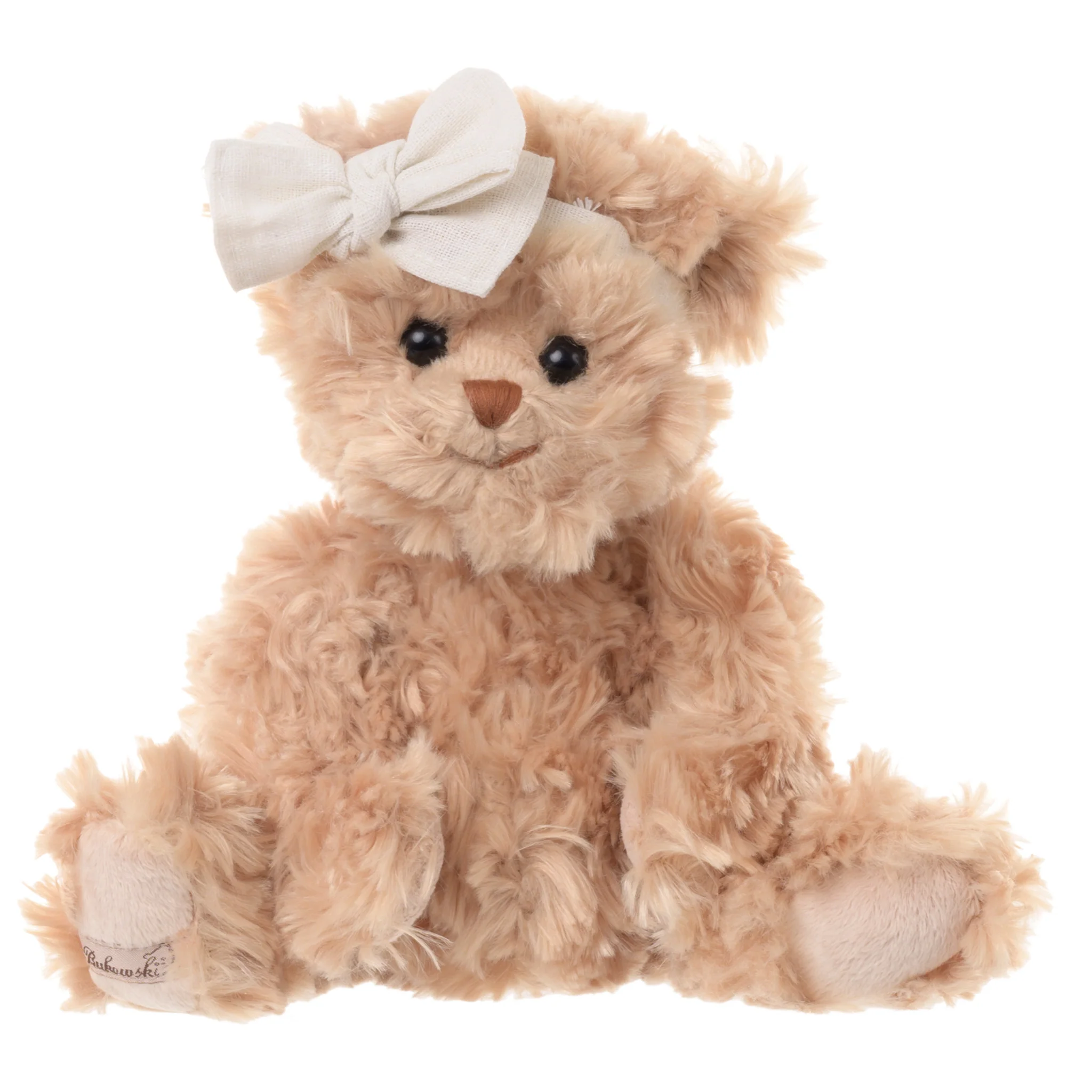 Emma Bukowski Bear is a 40cm high , extremely soft plush bear from Stockholm .She has a soft white bow on her head.